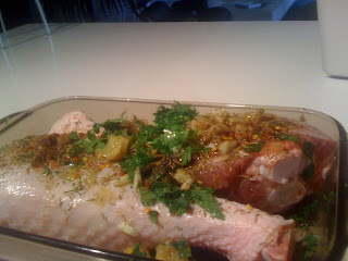 Then bron the drumsticks and place them in an oven dish. Pour over the verjuice and chuck in the oven until ready. No idea of the timing of this baby because it is in the oven at the moment.