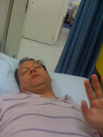 At 7am Myles' temperature had hit 38.8 degrees - I booked him into a Doctor's Surgery as an emergency patient. The Doctor referred him to hospital because of his symptoms. We saw a ED Doctor almost straight away - a young Doctor who hadn't had much experience. Blood was taken from Myles and he was put on a saline drip. While he was lying there I commented that today was meant to be about my back and he was just stealing the limelight - that produced a giggle. The blood test showed he had an infection but not what was wrong - so the Doctor decided to administer a lumber punch. Everyone was concerned that he had Meningitis and a spinal tap is the only way to find out.