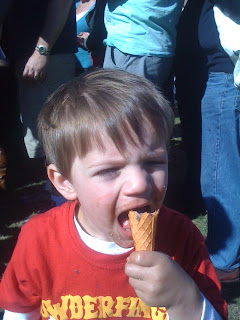 We had been told that in previous years people have been bogged in the Fair carpark so we took the ute down. Upon arriving we saw our neighbours Renae and Andrew getting their kids ready to visit the fair, so we joined them. Entry was $5 with proceeds going to the local RFS and we were greeting by Elvis (honky tonk style minus the hamburger gut) singing some tunes. It appeared that people from the whole area had come down to see the fair. Unfortunately there wasn't a lot to see or do, and as it happens, eat! I immediately came up with 3 ideas of low cost activities that could have been implemented and think I should get on the committee. Andrew got a pizza that took approx 15 minutes to arrive and Renae got an ice cream for the kids which took about 10 minutes - so not well organised by the owners! We were told there were kebabs around the corner so Myles and I waited.
